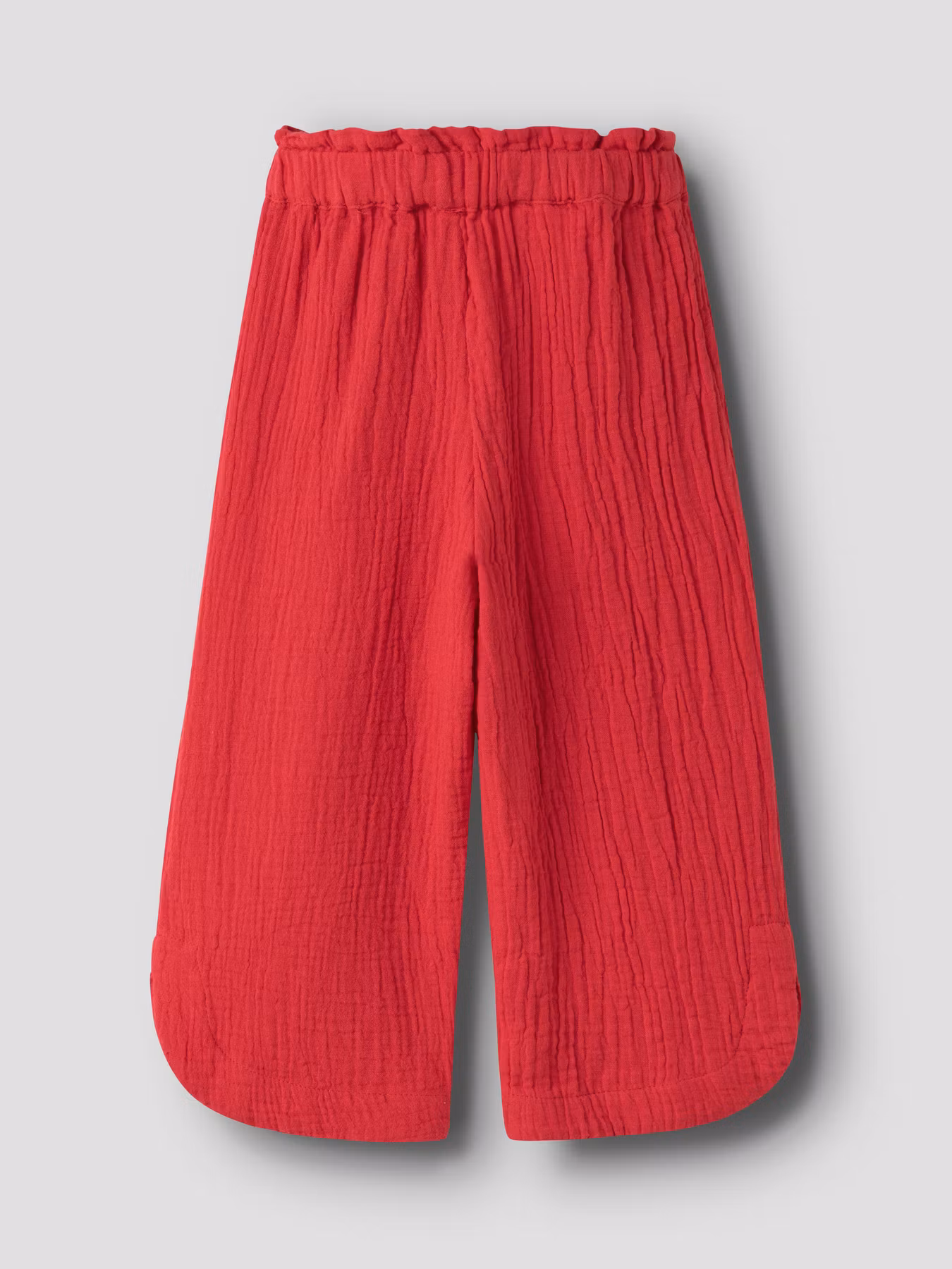 En luftig och användbar byxa i mjuk muslin. Byxan har justerbar midja och vid passform för bästa komfort. En självklar sommarfavorit!