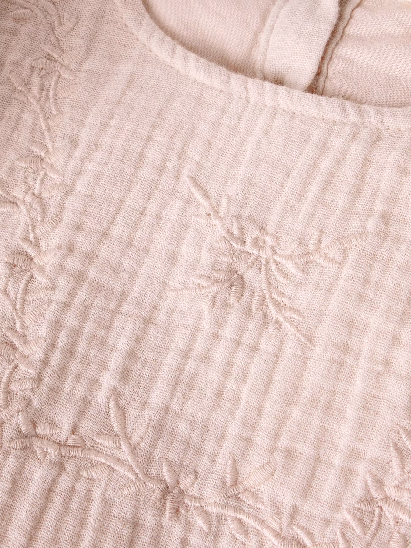 En riktigt mjuk och rosa drömklänning! Vackra broderier framtill, volangdetaljer och fin spets nedtill. En självklar favorit i garderoben.