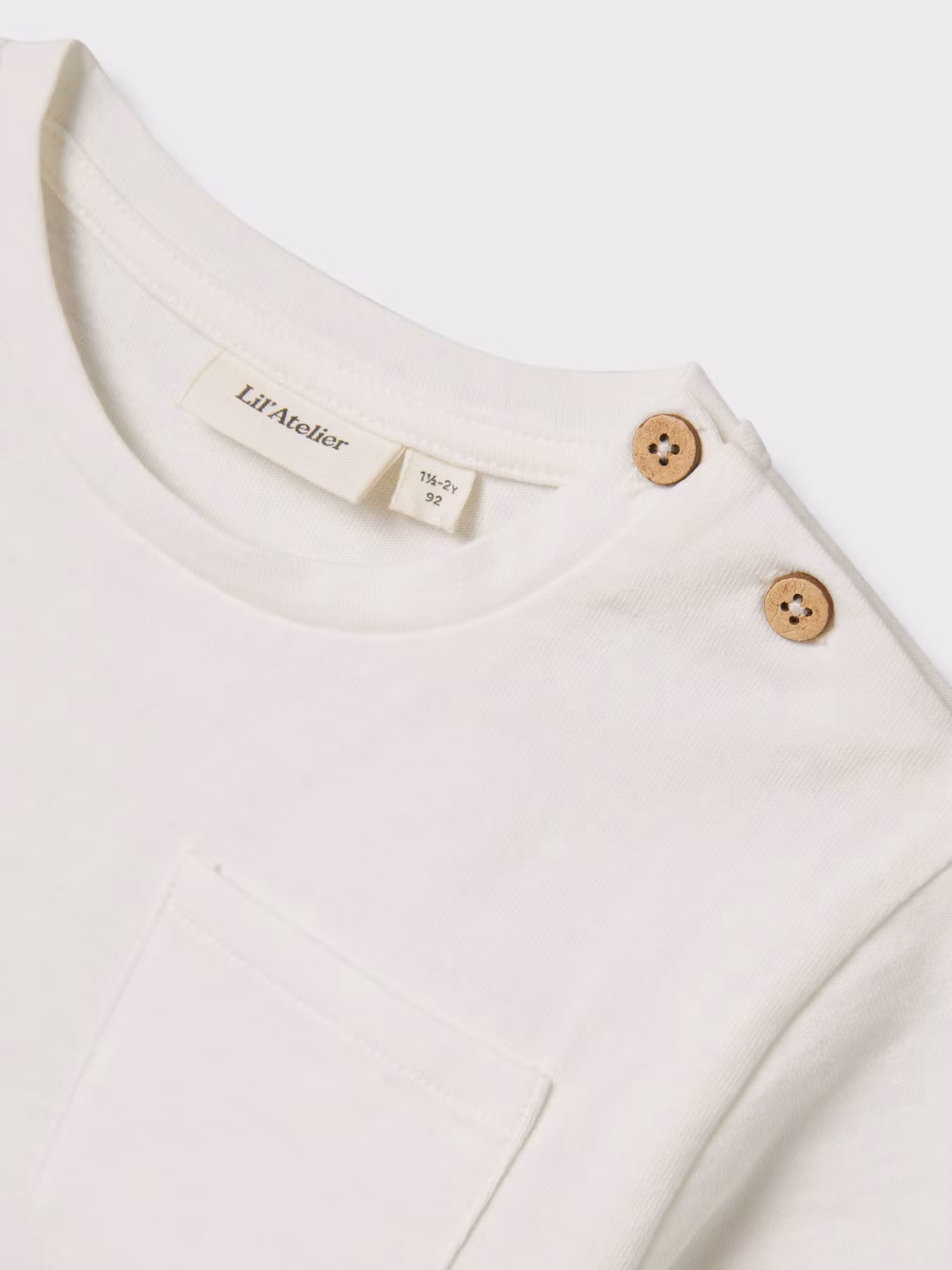 En mjuk och användbar t-shirt i underbar kvalitet. Fina detaljer med träknappar på ena axeln och en klassisk ficka. Det perfekta basplagget som kan matchas med