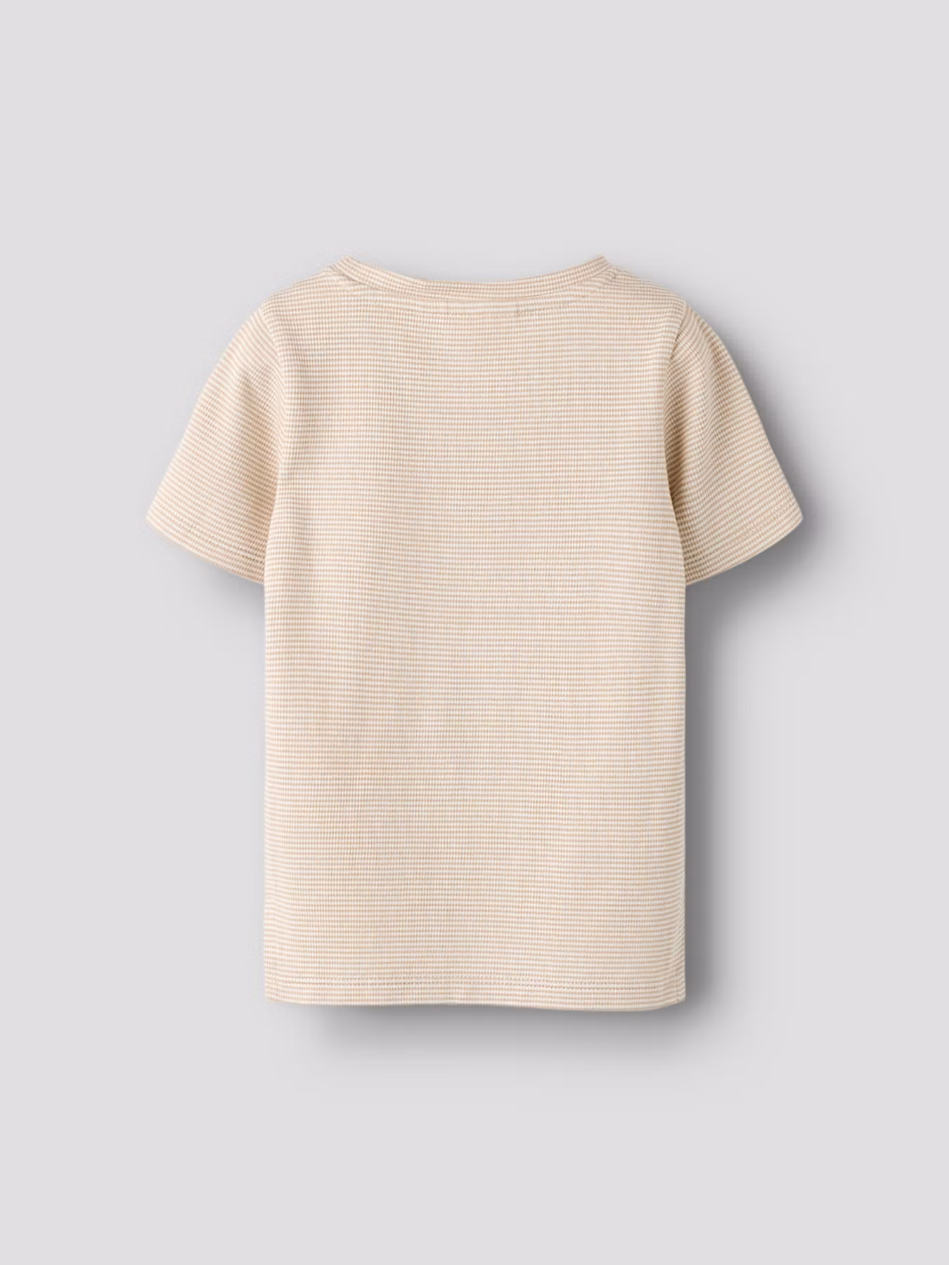 En mjuk och följsam ribbad t-shirt i fin ljusbeige randigt mönster. Klassisk passform och liten logodetalj nedtill. En bekväm och stilren bas i garderoben.
