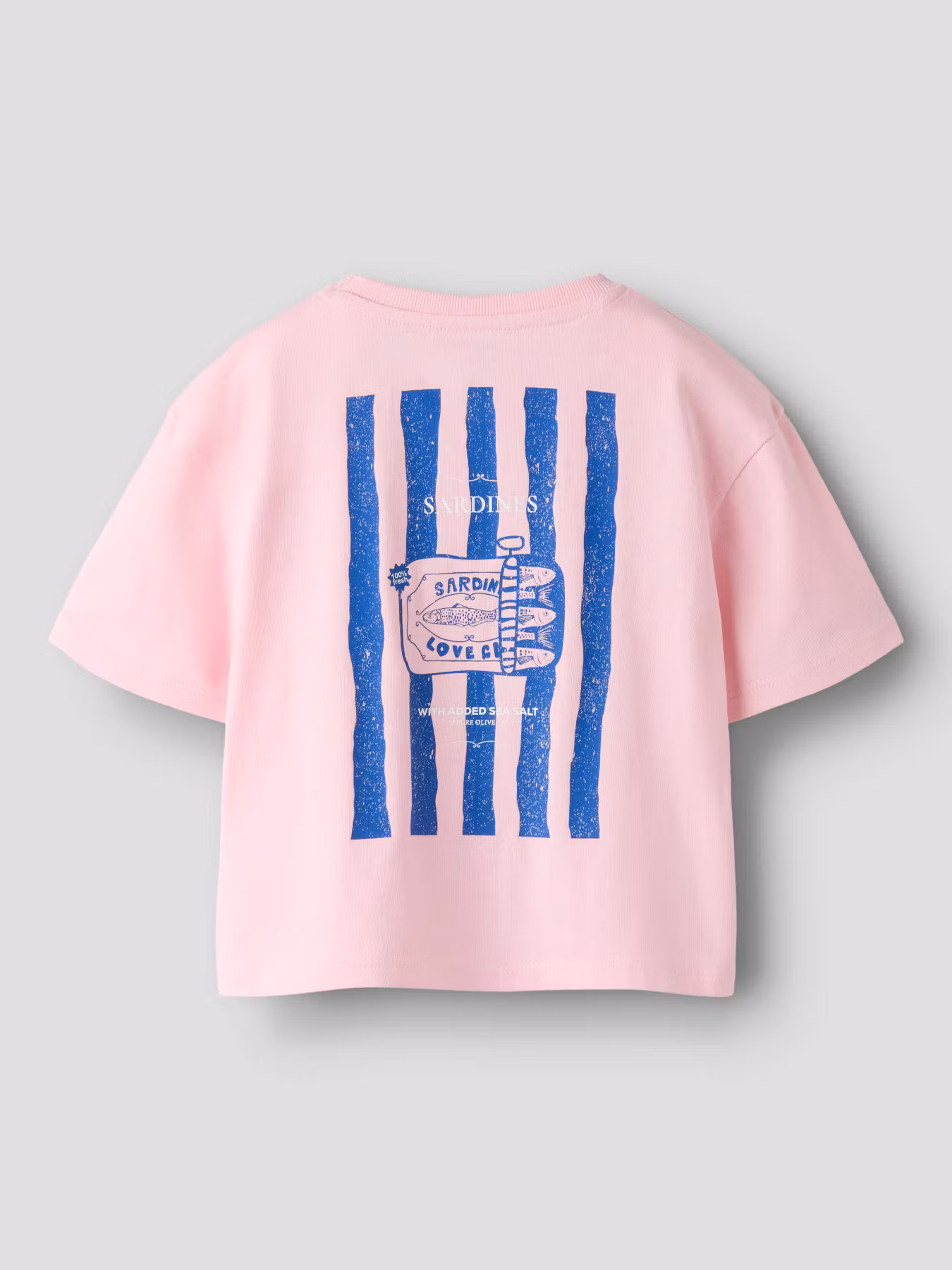Mjuk t-shirt från Name it, med klassisk rund halsringning, korta ärmar och med härligt tryck. Designad med en avslappnad look, förskjutna axelsömmar och en lätt oversized passform. En riktig sommarfavorit!