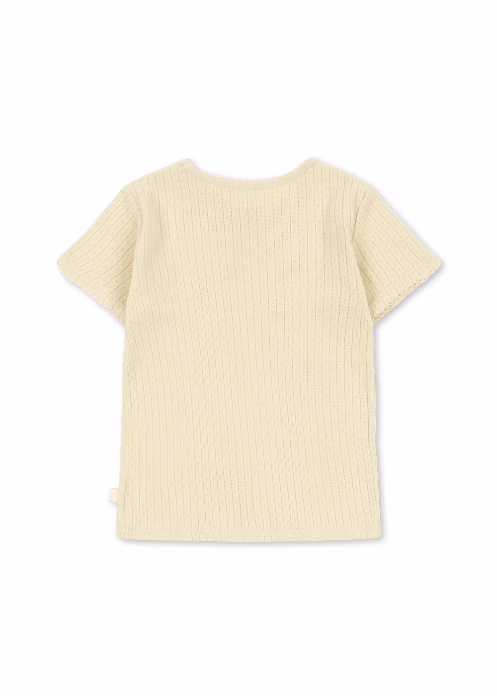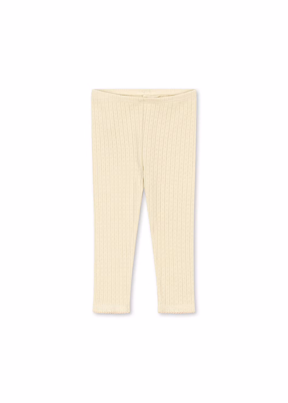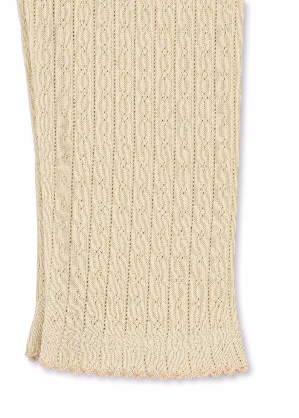 Mjuk basset med -t-shirt och leggings från Konges slöjd, tillverkade av 100% ekologisk bomull. T-shirtsen har ett dekorativt pointelle-mönster över hela plagget och dekorativ picotkant. Matchande mjuka och stretchiga leggings med bekväm elastisk midja. Ett favoritset i garderoben.