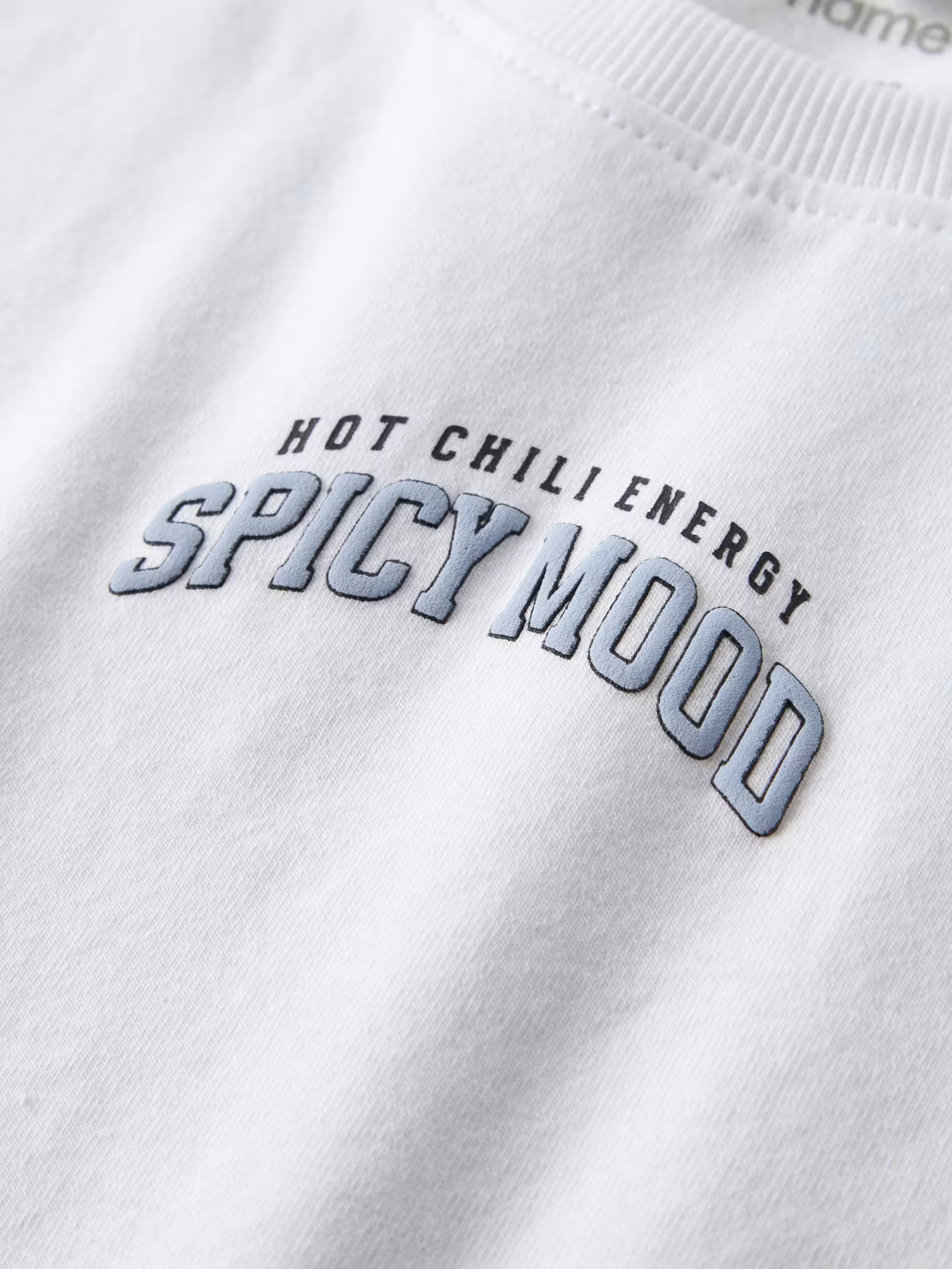 Ett ljuvligt set med en mjuk och användbar t-shirt med tryck på bröstet och rygg tillsammans med klassiska denimshorts. Sommarens favoritset!