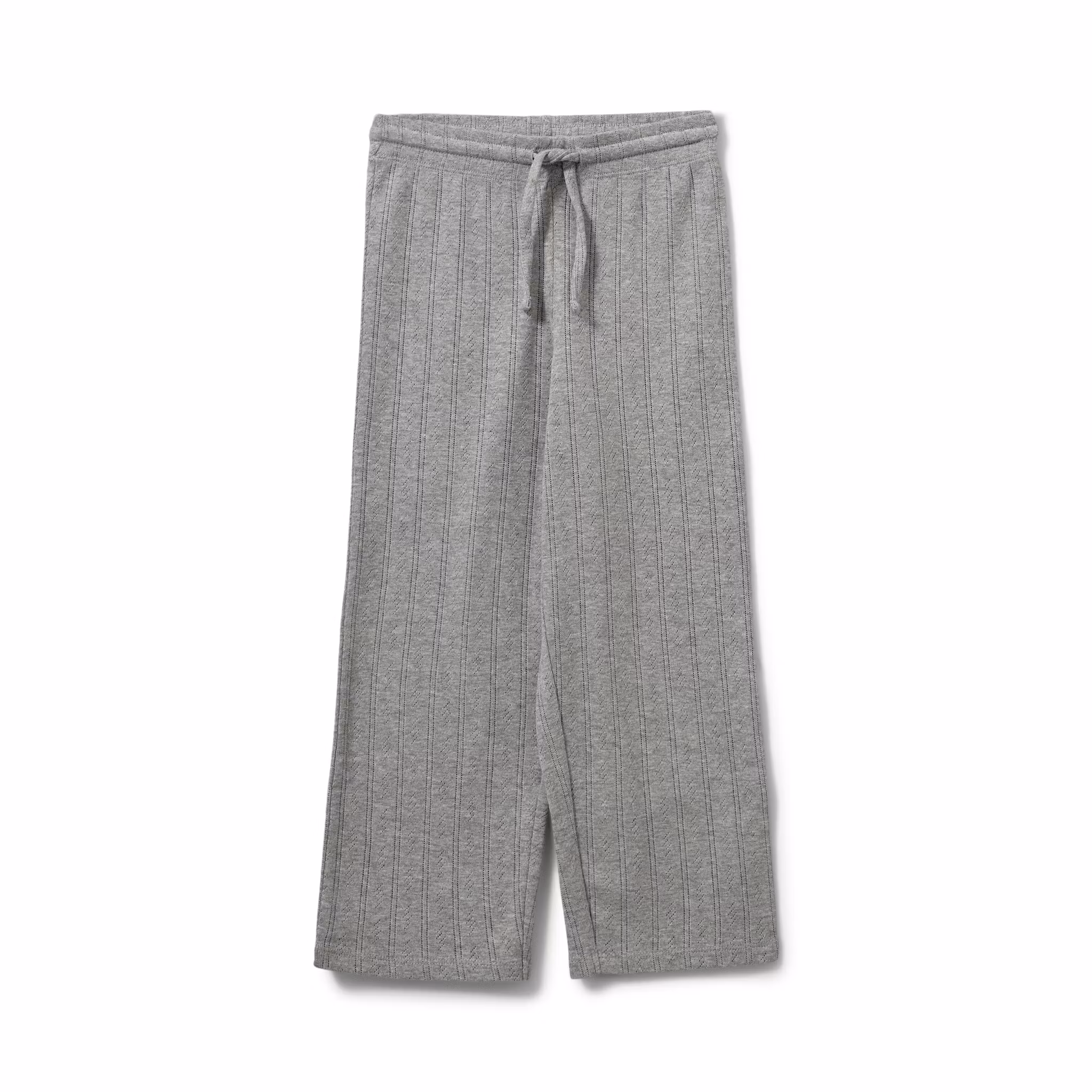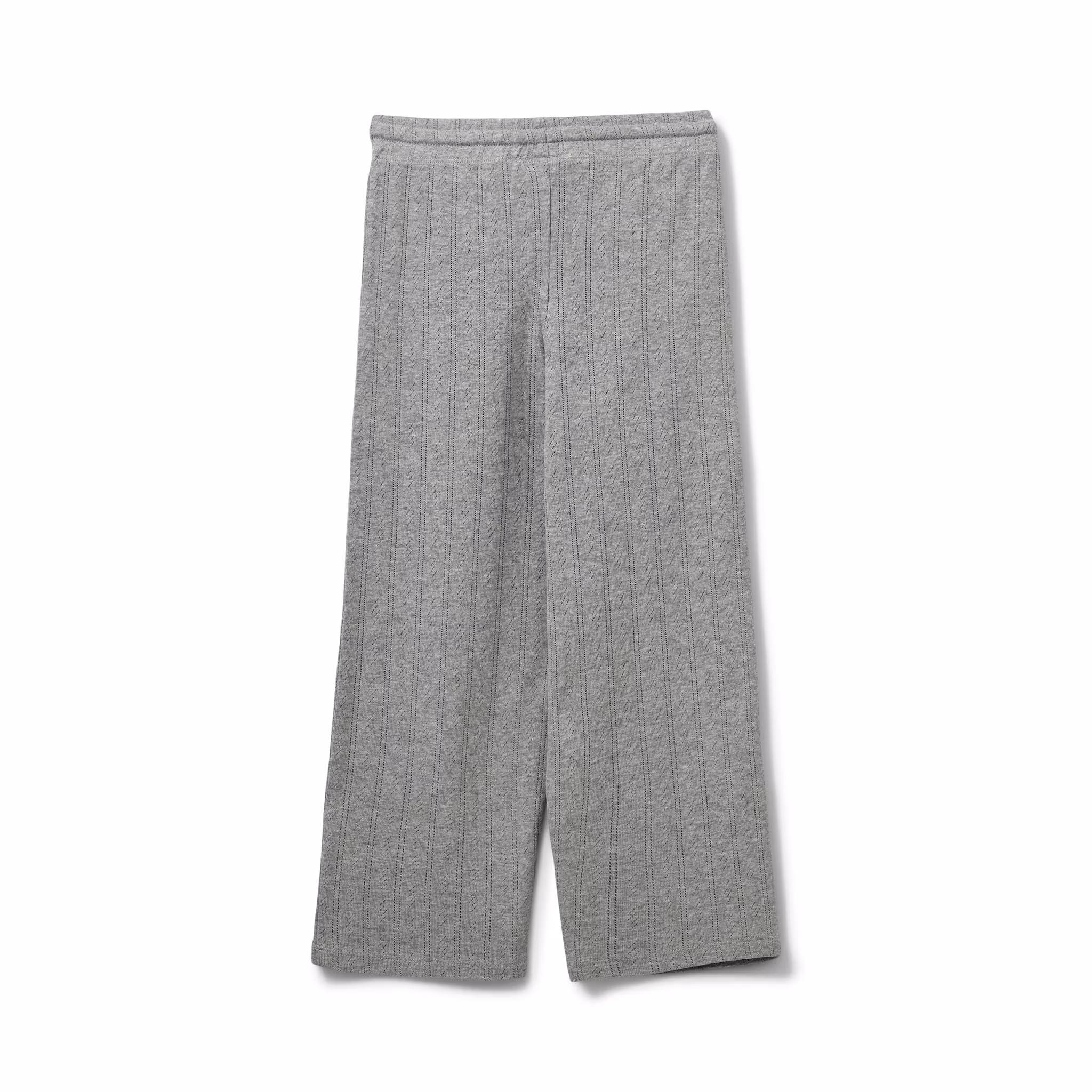Ljuvligt set med långärmad topp och byxa i grått med piontellemönster, tillverkad i 100% ekologisk bomull. Tröjdan har rund halsringning och bekväm passform. Byxan har en rak passform och justerbar midja med knytband för bästa passform. Ett stilrent bas i barnets garderob.