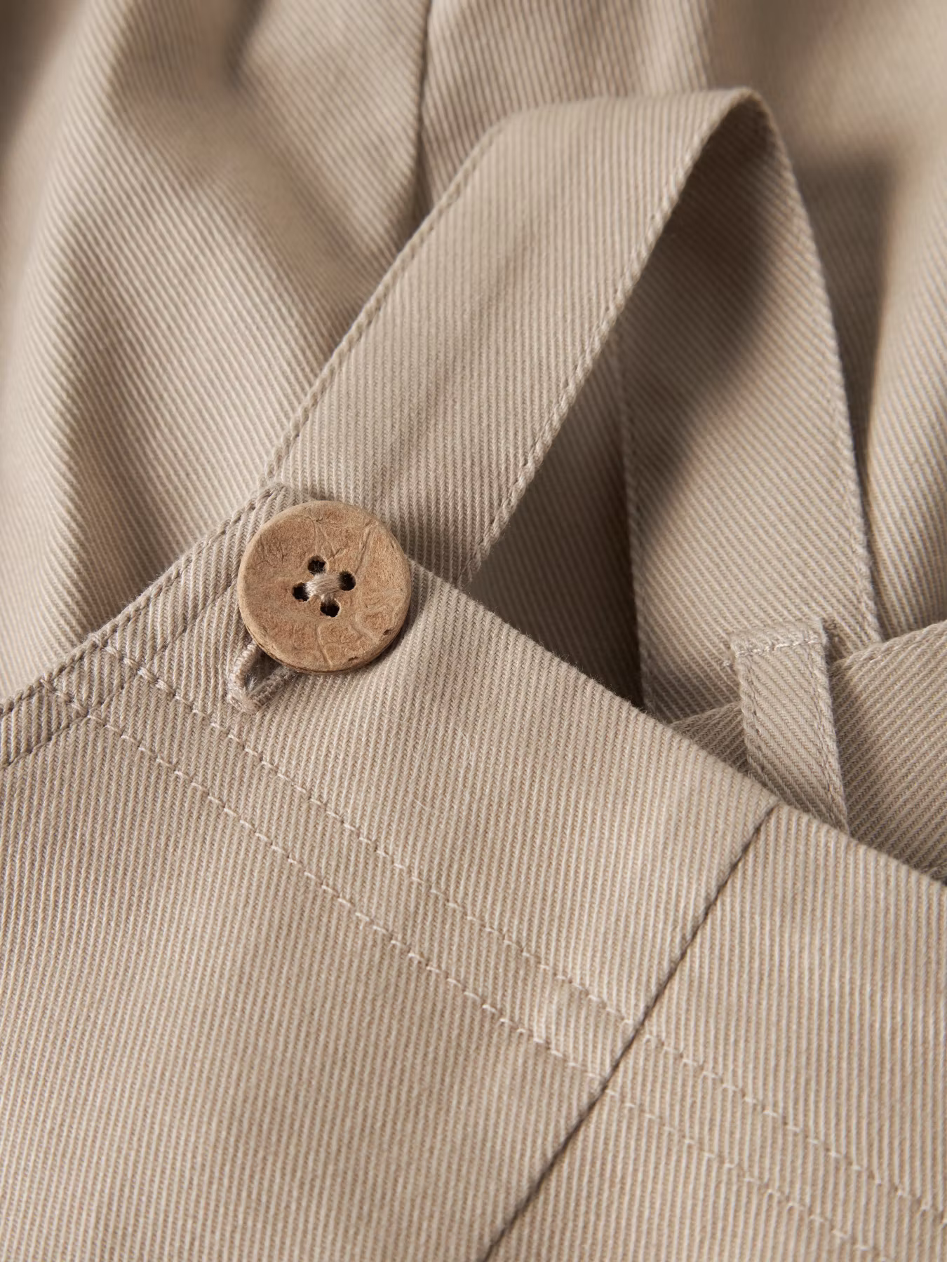 En tidlös och supermjuk beige hängselbyxa i mjuk twill. En självklar favorit som är lika fin till vardag som till fest.