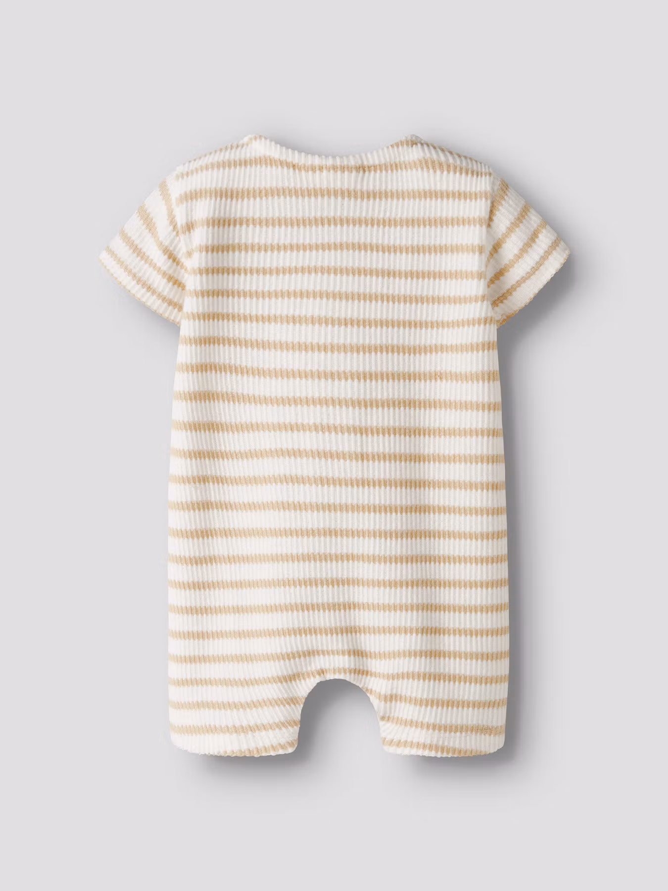 Ljuvlig ribbad romper med lätt stretch för maximal rörelsefrihet. Med träknappar framtill och fina ränder gör den både bekväm och stilren. Den har praktiska tryckknappar i grenen för enkla blöjbyten. En favorit i garderoben!