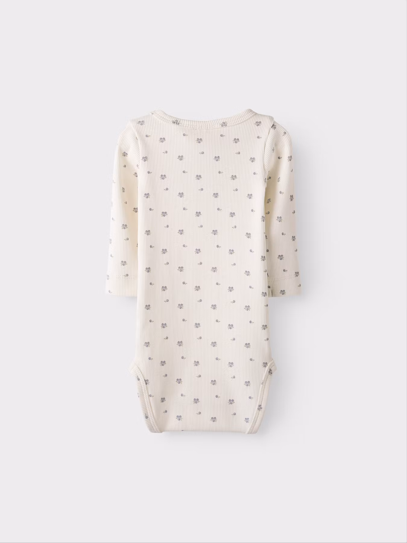 Ljuvligt mjuk och följsam ribbad body i skön jersey med lätt stretch för maximal rörelsefrihet. Med så fint blåbärsprint och praktiska tryckknappar i grenen och på axeln som gör påklädning och blöjbyten smidiga. En tidlös bas som passar både flicka och pojke.