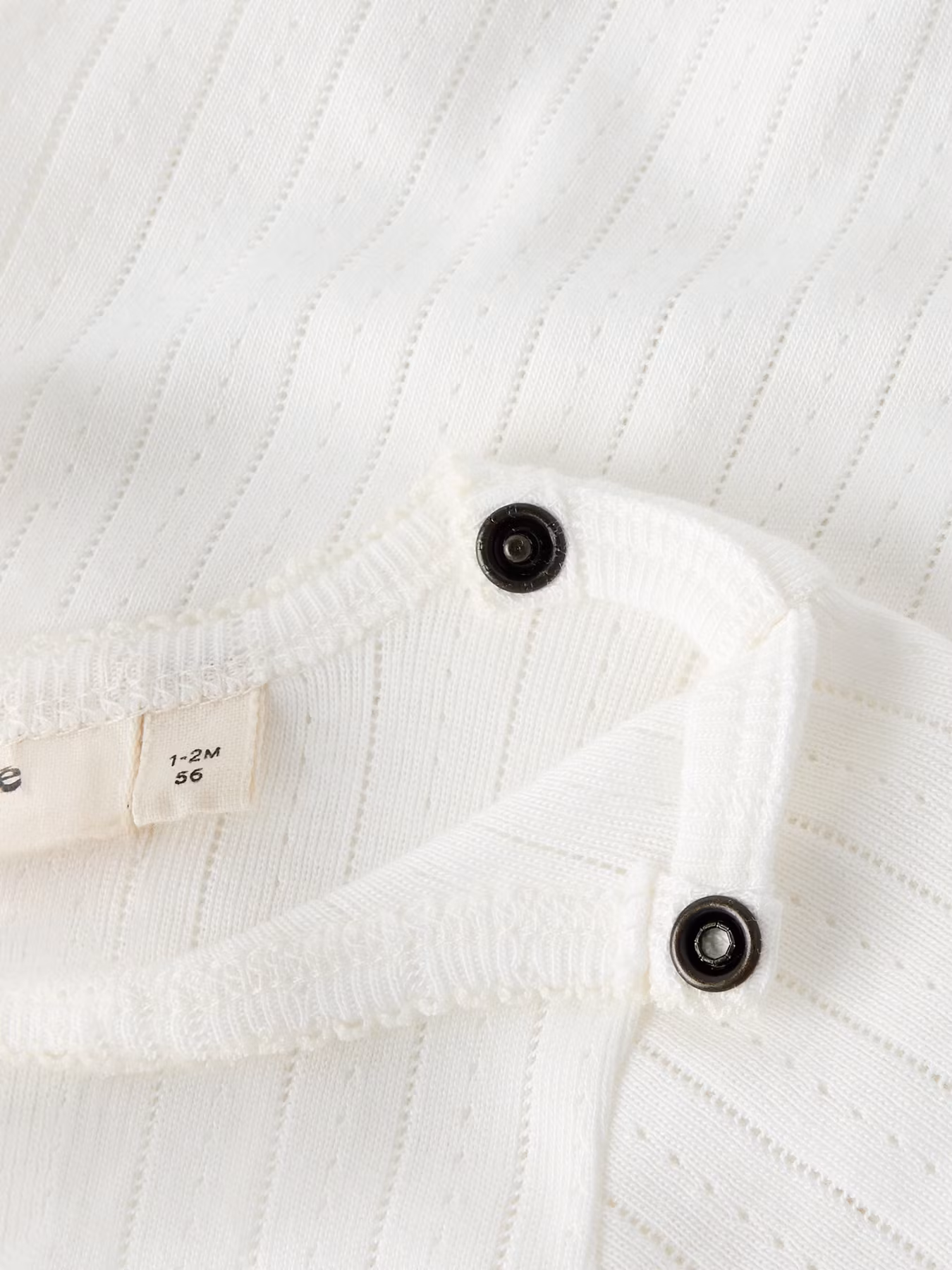 En otroligt mjuk och följsam kortärmad body i pointellemönster. Ett så användbart plagg i varje liten garderob, och perfekt under en tjockare tröja eller kofta. Den har praktiska tryckknappar på axeln och mellan grenen för enkla och smidiga blöjbyten. Den tidlösa designen gör det enkelt att matcha med alla typer av plagg.