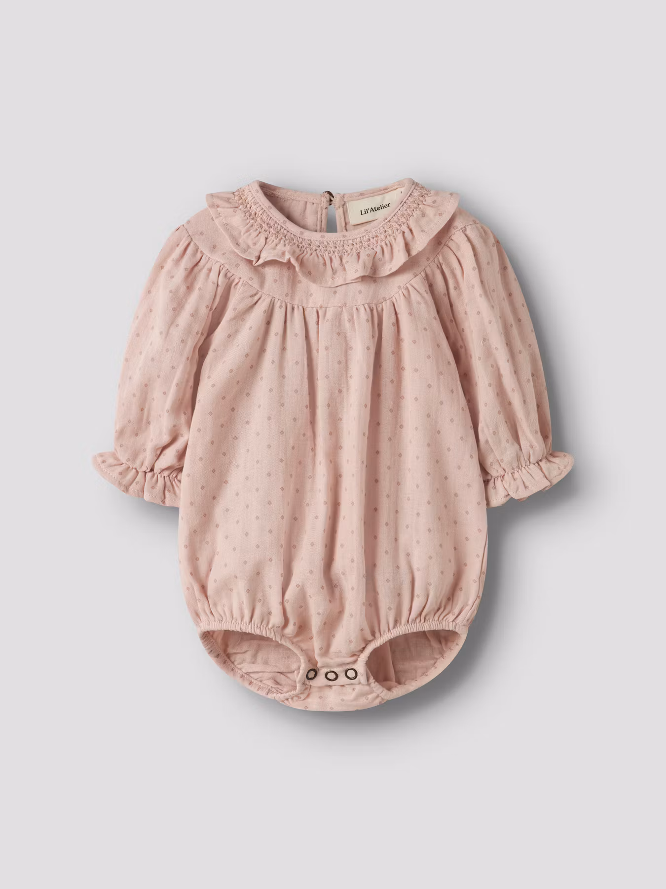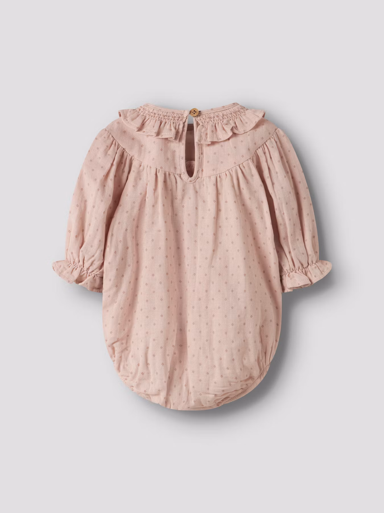 Ett drömmigt set med romper och strumpbyxa för alla fina tillfällen. Rompern har ett vackert diskret prickigt print och volangdetaljer. Det är en lös modell med knäppning baktill och mellan grenen för enkla blöjbyten. Ett drömplagg som verkligen sticker ut. Tillsammans med klassiska ribbade strumpbyxor från Cóndor - ett älskat basplagg med tidlös stil och fantastisk passform. Ett perfekt set för både vardag och festliga tillfällen.