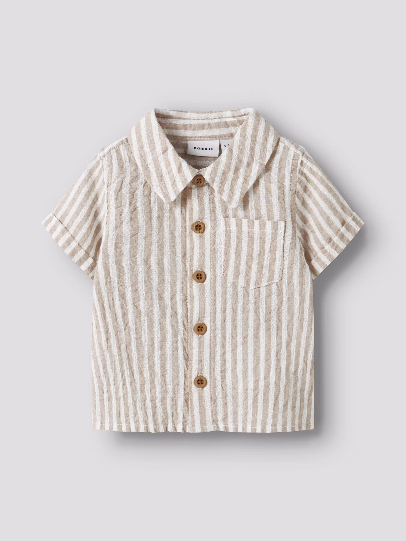 Ett ljuvligt set med en liten mjuk kortärmad skjorta och shorts i klassiska beige/vita ränder. En självklar favorit i garderoben.