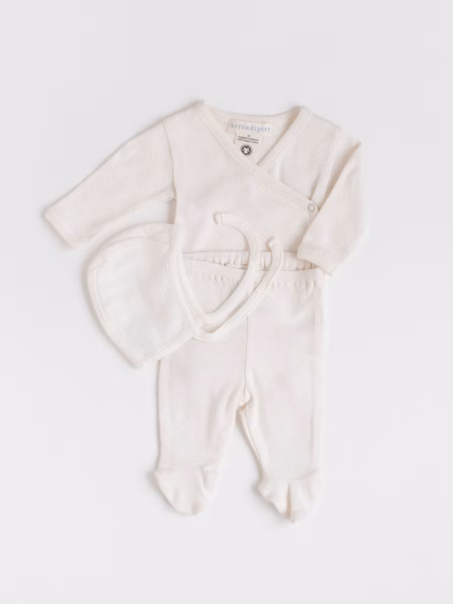 Serendipity Organics - Newborn Set mössa, body & byxa Piontelle - Offwhite
