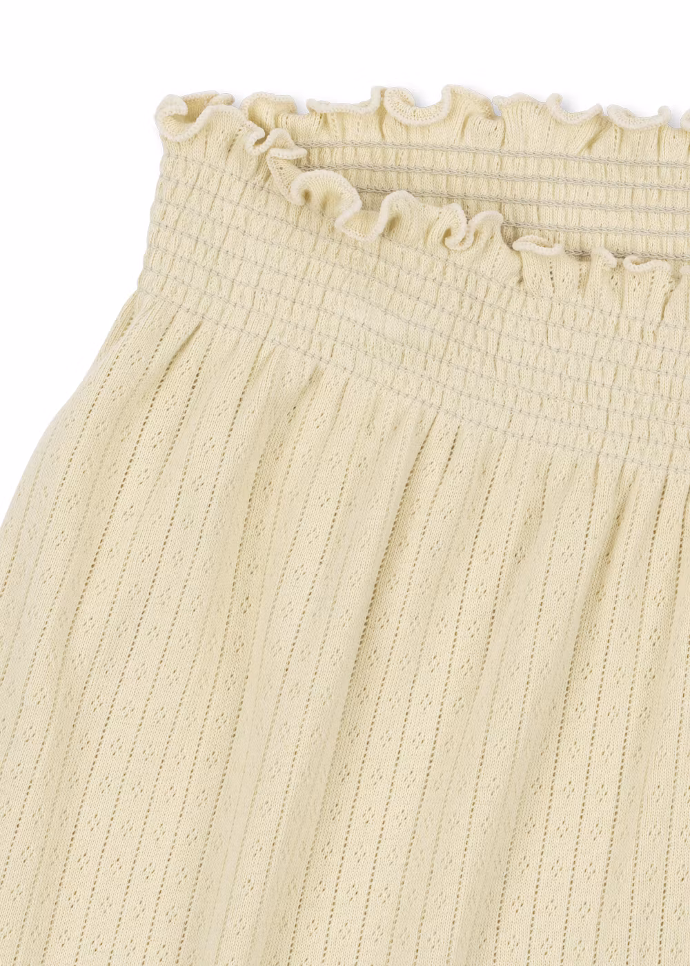 Mjuka basshorts för mamma från Konges Slöjd, med ett dekorativt pointellmönster över hela plagget. Designade med en flexibel elastisk midja och en lös, avslappnad passform. Kul att matcha med sitt barn.